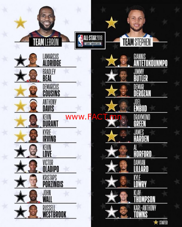 NBA-гийн Бүх оддын тоглолтын формат өөрчлөгдөж, хамгийн өндөр санал авсан хоёр тоглогч багийн ахлагч болдог болсон билээ. Мөн ахлагчаар сонгогдсон тоглогч өөрийн сонголтоор багаа бүрдүүлэх болсон юм. ЛеБрон Жэймс болон Стефен Керри нар өчигдөр өөрийн багтаа сонголтоо хийлээ.