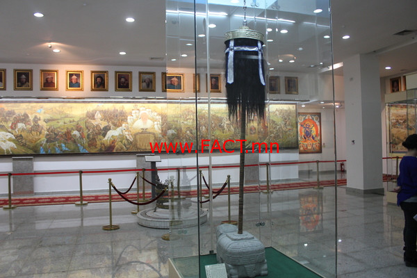 Х.Чойбалсан, Ю.Цэдэнбал нарын хөргийг харж зогсмоор санагдсан ч охин минь тоосонгүй. Харин Монголын газрын зургийг нэлээд нухацтай харж, одоо хаана зогсож байгаа эмээ, өвөө нь хаана амьдардаг, өнгөрсөн зун очсон тэр их устай нуур хаана байдаг вэ гэгчлэнгээр ярилцлаа. Цааш явж, баатруудын хувцас хэрэглэлтэй танилцах үеэр Өгөдэй хааны үед хэрэглэж байсан зоосон мөнгийг харахаар өнгийхдөө охин минь шилэнд нь хүрчихсэн юм. Гэтэл цаанаас нэг бүсгүй “хөөш, шилэнд хүрч болохгүй” гэж байна. Дууны өнгө нь нэлээд залхсан, төвөгшөөсөн байдалтай. “Миний охин шилэнд нь битгий хүрээрэй” гэж хэлчихээд дотроо бол “хэдхэн өдөр тэсээд хүүхдүүд баярлуулчихаж болдоггүй юм байх даа” гэж бодоод өнгөрлөө. Гол талбайд хаадын хөрөг зураг өлгөөтэй байна.