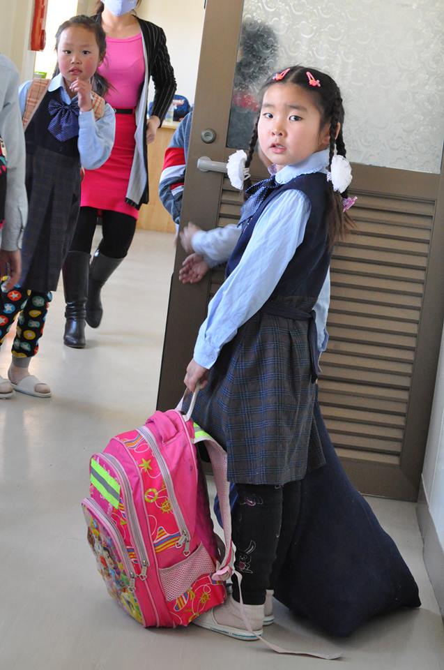 Үнэхээр бид охиныхоос замдаа нэг ч хором түүртэж, алгуурлалгүй явсаар байгаад яг хоёр цагийн дараа сургуулийнх нь харалдаа автобусны буудал дээр буулаа. Сонгинохайрхан дүүргийн XXII хорооны нутагт дэвсгэрт орших 122 дугаар дунд сургууль 640 хүүхдийн багтаамжтай ч өдгөө 1760 гаруй сурагчтай тул гурван ээлжээр хичээллэдэг. Баяндүүрэнгийн ангийнхан хоёрдугаар ээлж буюу 11:20-14:50 цагийн хооронд хичээллэнэ. Тус сургуулийн захиргаанаас “Гараас гарт” гэсэн үйл ажиллагаа зохион байгуулж байгаа нь сурагчдын аюулгүй байдлыг хамгаалсан чухал ажил юм байна. Тодруулбал, эцэг, эхчүүд хүүхдээ заавал багшид нь хүлээлгэж өгөөд, хичээл тарахад нь хүлээж авах ёстой. Энэ тохиолдолд хүүхэд гэр, сургуульдаа хүрэх замдаа гэмт хэрэг, бусад эрсдэлээс бүрэн сэргийлж чаддаг байна. Мөн өөр нэг олзуурхууштай зүйл нь сурагчид цэвэр, таатай орчин бүрдүүлэхийн тулд сургуулийн үүдэнд гутлаа цэвэрхэн углаашаар сольж өмсөөд анги руугаа ордог болжээ. Энэ нь Баяндүүрэнд өнөөх зузаан өмд, цамцнуудаа нимгэлэх боломж болж байлаа. Харин сурвалжлагын маань эзний ээж сургуулийн хажууханд байх танилынх руугаа явахаар гарсан юм. Тэрбээр гэр рүүгээ харих боломжгүй бөгөөд учир нь хичээлийн цаг туулах замын цагтай яг тэнцүү тул эндээ хүлээж байгаад нэг мөсөн аваад буцахаас өөр аргагүй. Өөрөөр хэлбэл, охиноо сургуульд сургахын тулд өглөө гэрээсээ гараад орой хамт харихаас өөр сонголтгүй гэсэн үг.