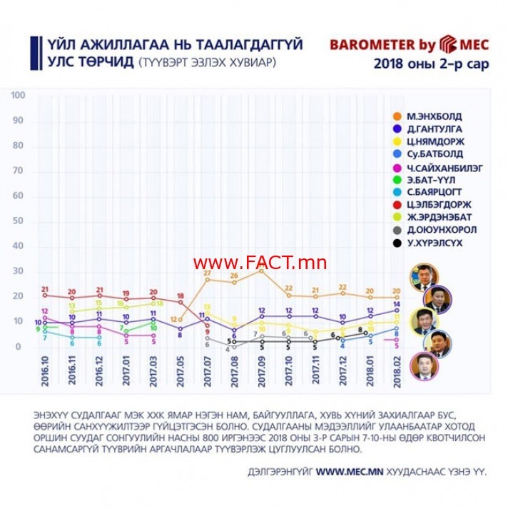 МЭК судалгааны байгууллагаас нэгэн судалгааны ажил хийжээ. Энэ хүрээнд Үйл ажиллагаа нь таалагддаггүй улстөрчид гэсэн “номинаци”-аар иргэдийн нэрлэсэн улстөрчдийг зарласан байна.