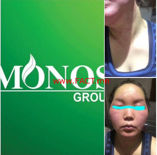 Энэ талаар бүсгүй: “Би нөгөө Монос группээс гоо сайхны бүтээгдэхүүн худалдаж аваад харшил өгөөд гэсэн хүн байна. Гоо сайхны бүтээгдэхүүн худалдаж авахдаа эмзэг арьстайгаа хэлсээр байхад тестер өгөөгүй, дээрээс нт буруу тос өгч явуулсан. Хүний нүүрэн дээр ийм их харшил, өөрчлөлт өгчхөөд, хоёр удаа аймаар нүүртэйгээ очиж уулзаж байхад огт тоогоогүй. Одоо бүр эмнэлэгт хэвтчихээд байхад огт ирж уулзаагүй байна.