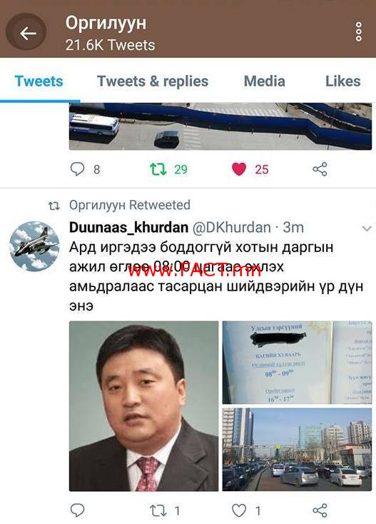 За ингээд 07:30 цагт хүүхдээ багшгүй ангид сэтгэл нь зовнин үлдээгээд гарсан эцэг эхчүүд ажилдаа яарсан ч 5-10 км-ын зайтай ажилдаа ирэх гэж 30-60 минут зам дээр түгжирч байна. Ингээд өглөө 08:00 цагт ажилдаа ирэх биш үндсэндээ 09:00 цагт ирж байгааг Нийслэлийн Засаг дарга С.Батболд та анзаарч байгаа болов уу. Таны хувьд хүүхдүүд чинь том болсон байж болно, ач зээг чинь зөөж өгдөг асрагч байж магадгүй. Гэвч энгийн иргэд, жирийн төрийн албан хаагчдын хувьд үр хүүхдээ өглөө цэцэрлэгт өгөх, орой цэцэрлэгээс нь авах үүрэг ноогддог гэдгийг та даан ч мэддэггүй бололтой. Үгүй ядаж өөрийгөө тойрон хүрээлж байгаа зөвлөх, орлогч, газар хэлтсийн дарга нэртэй элдэв “бялдуучлагч” нараасаа асууж болмоор доо. Цаашлаад иргэдээс судалгаа авч цэцэрлэг, сургууль, их дээд сургуулийн хичээл, төрийн ажил эхлэх тарах хуваарьт өөрчлөлт оруулах замаар шийдэж болно доо. Гэвч мань хүн “нуухийг нь авах гээд нүдийг нь сохлов” гэгчийн үлгэрээр төрийн албаны ажил эхлэх цагийн хуваарийг өглөө 08:00 цагаас болгох тооцоогүй шийдвэр гаргасан нь ийнхүү замын ачааллыг ихэсгэж, түгжрэлийн нэмэгдүүлэв.