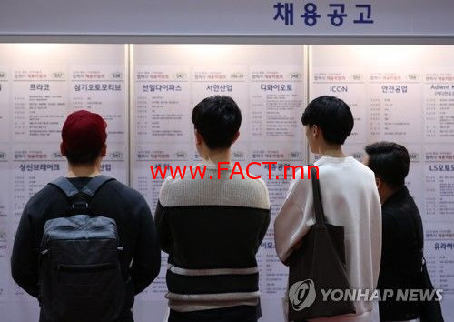 Өмнөд Солонгост ажилгүйдэл нэмэгджээ