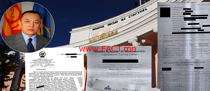 Түүнд бичсэнээр “…Оюутан О нь МУИС-ийн захирлын 2015 оны А/275 дугаар тушаалаар Олон харилцааны магистрын сургалтад элсэн орсон байна. О нь гадаадад Нисгэгчийн мэргэжил олгох сургалтанд хамрагдаж 2011 онд төгссөн, 2013 онд мөн гадаада Роккег-50 агаарын хөлгийн маягийн зэрэглэл эзэмших сургалтанд хамрагдсан байна. ИНЕГ-аас дээрх хоёр академи нь мэргэжил олгох бакалаврын зэрэгтэй адилтгах хэмжээний сургалт явуулж гэрчилгээг олгодог болох талаар 2015 оны арванхоёрдугаар сарын 1-ний өдрийн 02/г/1173 дугаар албан бичгийг тус сургуульд хүргүүлсэн байна.