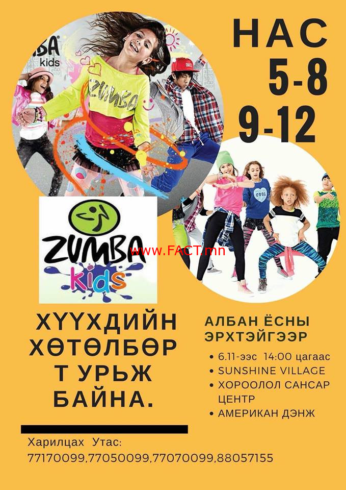 Zumba kids хүүхдийн зуны сургалт албан ёсны эрхтэйгээр 6.11-ээс бүртгэлээ авч эхэллээ