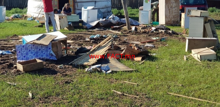 Өнөөдрийн байдлаар /өчигдөр/ гудамж талбайг чөлөөлөн зам гаргах, сэргээн босгох, лаг шавар, эвдэрч сүйдсэн барилга байшин, хог хаягдлыг зөөж цэвэрлэх ажлууд хийгдэж байгаа бөгөөд хохирлын хэмжээ урьдчилсан байдлаар 86 өрх, зургаан төрийн байгууллагад нийтдээ 368,038,500 төгрөгийн хохирол учраад байгааг сумын Засаг дарга П.Итгэлбаяр энэ үеэр танилцууллаа.