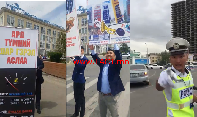 Шатахууны үнэ нэмэгдсэнийг эсэргүүцэж, Энхтайваны өргөн чөлөөний дагуу “Эсэргүүцлийг илэрхийлсэн дуут дохио” арга хэмжээ болсон юм. Энэхүү эсэргүүцлийг зохион байгуулах талаар Зам тээврийн зөвлөлөөс энэ сарын 7-ны өдөр хийсэн хэвлэлийн хурлаараа мэдэгдсэн байдаг. Тэднийг зам дээр дуут дохио дуугаргахыг уриалах үеэр Замын цагдаагийн алба хаагч тэднийг “зайл” хэмээн хөөсөн нь олныг бас л талцуулаад амжив.