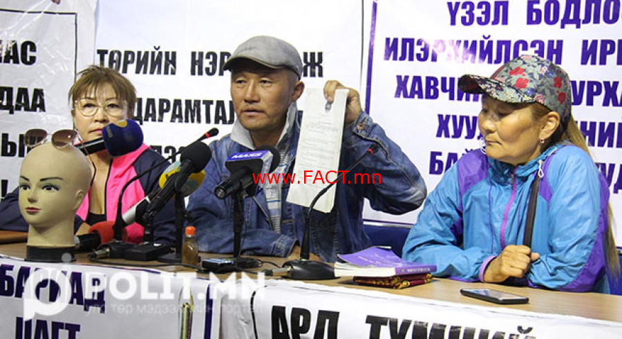 Торгуулиар далайлган ард түмний нуруун дээр маш их дарамт үүсгэж байгаа явдлыг бид эсэргүүцэж байна. Баянгол дүүргийн цагдаагийн хоёрдугаар хэлтсийн дэд хурандаа н.Эрдэнэбилэг гэж хүн иргэн С.Мишигээд гомдол гаргасан. Зөрчлийн хуулийн 1.1, 1.2, 1.4 гэх үндэслэлээр гомдол гаргасан байдаг. Үүнийх нь дагуу өчигдөр шүүх хурал болж 15 хоног баривчлах ялаар шийтгүүлээд байна. Баянгол дүүргийн цагдаагийн хоёрдугаар хэлтсийн дэд хурандаа Эрдэнэбилэгээр ахлуулсан цагдаагийн ажилчид 2018 оны зургадугаар сарын 27-ны өдөр ирж хууль бус шаардлага тавьсан. Энэ шаардлагыг биелүүлээгүй учир зөрчлийн хуулиар хэрэг үүсгэж байна гэх тайлбар бидэнд өгсөн.