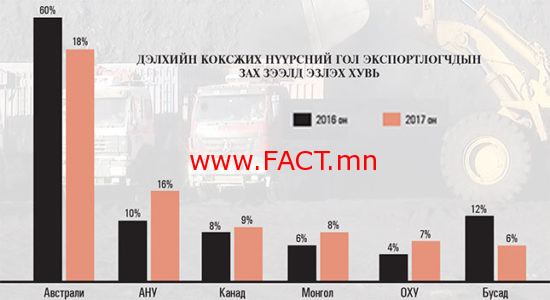 Монголын нүүрсний экспортын гол зах зээл бол Хятад. Тус улсын хувьд оны эхний хагаст коксжих нүүрснийх нь импорт 29 сая тоннд хүрсэн байна. Энэ нь өнгөрсөн оны мөн үетэй харьцуулахад 19.4 хувиар буурчээ. Мөн Хятадын коксжих нүүрсний дотоодын олборлолт ч буурсан дүнтэй харагдаж байна. Хэдийгээр импорт буурсан ч гангийн үйлдвэрлэл нь өссөн аж. Дэлхийн гангийн холбоо Хятадын гангийн үйлдвэрлэл 6.5 хувиар өсч, 451.2 сая тоннд хүрсэн тухай мэдээлэв.Мөн Хятадын коксжих нүүрсний үйлдвэрлэл оны эхний хагаст 214 сая тонн болж буурсан нь мөн үетэй харьцуулсан үзүүлэлт юм. Хятадын хувьд агаарын бохирдлыг бууруулах, байгаль орчинд ээлтэй үйлдвэрлэл явуулахын тулд томоохон үйлдвэр, уурхайн хүчин чадлыг хумих, авто замаар эрдэс түүхий эд тээвэрлэхийг хязгаарлах бодлого баримтлан “ Цэнхэр тэнгэр “ хөтөлбөрийн хэрэгжилтийг чангатгахаар болжээ. Өөрөөр хэлбэл, дотоодын хуучин, үр ашиггүй уурхайнуудыг хаах бодлого тус улсын импортын эрэлтийг тодорхой хэмжээнд хязгаарлаж буй. Ингэснээр 2018-2020 он гэхэд Хэбэй мужид нүүрсний хэрэглээг 200 сая тонноор буулгахаар болсноо хэлээд байна. Түүнчлэн Хуанхуа болон Таншан боомтоос эрдэс түүхий эд, нүүрсийг зөвхөн төмөр зам болон усан замаар тээвэрлэдэг болохоор идэвхийлэн ажиллаж байна гэдгээ “Сoal Mongolia-2018” чуулганы индэрээс Хятадын коксжих нүүрсний зах зээл, эрэлт, нийлүүлэлт үнэ, өрсөлдөөн сэдвээр илтгэл тавьсан “Фэнвей Энержи Информэйшн Сервисез” компанийн дэд ерөнхийлөгч Сара Лиу мэдэгдэж байна. Ийнхүү Хятадын агаарын бохирдлыг бууруулах бодлоготой холбоотой үйл ажиллагаанууд Монгол Улсад шинэ дохио өгсөөр байгааг “Coal Mongolia-2018” чуулганы илтгэлээс харж болох юм.