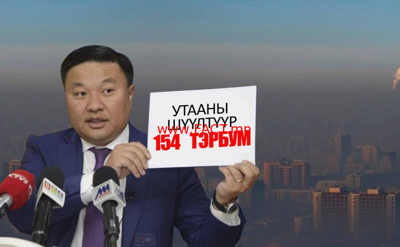 Ганц авууштай нь, 10 мянган төгрөгийн янданд 500 мянган төгрөгийн утаа шүүгч байрлуулах гэсэн Н.Цэрэнбат сайдын бүтэшгүй саналыг буцаахаар шийдсэн байна. Гишүүд “Олон нийт эсэргүүцээд байхад энэ чигээр нь баталвал Засгийн газар болоод намын нэр хүндэд халтай. Үүнийг хасъя” гэсэн санал гаргаснаар асуудлыг нэг тийш нь болгожээ. Улмаар агаарын бохирдол бууруулах чиглэл дэх 80 тэрбумыг өөр зүйлд зарцуулахаар болсон гэх ерөнхий мэдээлэл олдов.