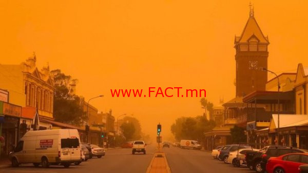 Австралийн зүүн өмнөд нутгуудад асар хүчтэй шороон шуурга дэгдсэний улмаас тэнгэр улбар шар өнгөтэй болон хувирсны зэрэгцээ агаарын чанар тулгамдсан асуудал болоод байна.