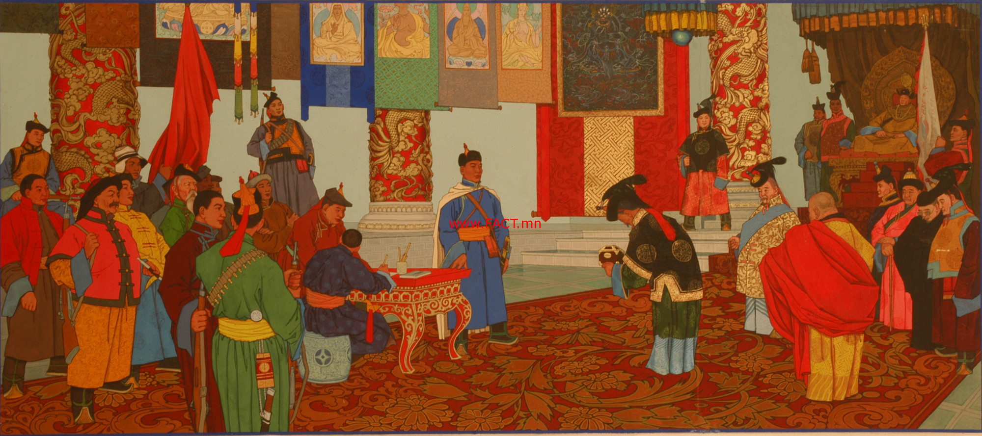 Олноо өргөгдсөн Монгол улс буюу тусгаар тогтнолоо зарласан үе: ХХ зууны Монгол үндэстний дунд харийн дарангуйллаас чөлөөлөгдөх сэргэн мандлын үзэл, хөдөлгөөн өрнөж, улмаар 1911 онд манжийн колоны ноёрхлыг унаган шашин, төр хосолсон хаант засгийн хэлбэрээр төрийн тусгаар тогтнолоо сэргээн тогтоов. Улмаар бүх Монгол туургатан нэгдэх гэсэн авч Хаант Орос улс, хятадын Дундад Иргэн улсын их гүрний түрэмгий бодлогод цохигдон тэрхүү бодлого нь хэрэгжээгүй юм. 1919 онд хятадын Дундад Иргэн улс зэвсгийн хүчээр түрэмгийлэн Монголын тусгаар тогтнолыг устгах гэж оролдож байжээ. Энэ үеэс Монголчуудын дунд улс үндсээ аврах үзэл дахин сэргэжээ.