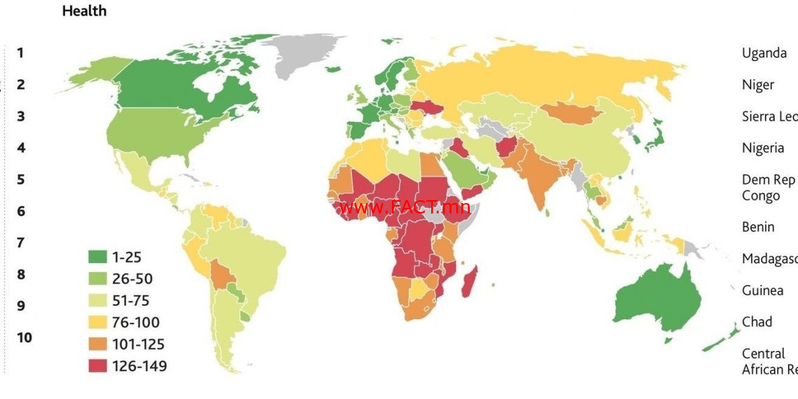 Хүн амын эрүүл мэнд хамгийн сул дорой 10 оронд: