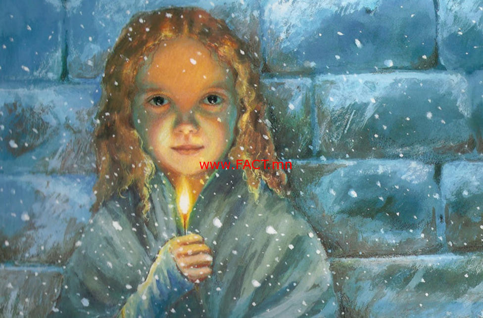 Шаахайныхаа өрөөсөнг эрээд цөхөөд олсонгүй. Нөгөөхийг нь танихгүй хүүхэд булааж аваад алга болов. Хоёр хөл нь даарсандаа хөхийж мэнчийгээд, улаан юм болжээ. Хуучин хормогчны халаасанд хэдэн хайрцаг чүдэнз хийсэн байх бөгөөд нэгийг гартаа барьж, бүх л өдөржин яваад ганц ч хайрцаг чүдэнз зарсангүй, даан ч гаслантай ажээ.Мөрөө бүрхэн намирсан сайхан мушгаа шаргал үсийг нь цасан ширхэг дарах нь үзэмжтэй боловч одоо түүнийгээ сайхан гэж яахин мэдэх билээ.