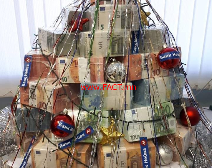 ОХУ-ын Екатеринбург хотын “Нейва” банкныхан шинэ жилийн гацуурыг 1,1 сая евро & 1,2 сая ам.долларын жинхэнэ дэвсгэртүүдээр чимэглэсэн биш бүр тэр чигээр нь барьж босгожээ. Банкны удирдлагууд үүнийг сайшаасан бол иргэд яасан гэж бодож байна даа?
