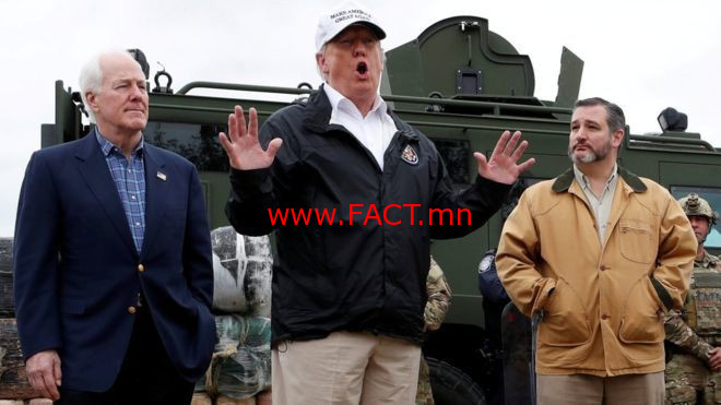 АНУ-ын Ерөнхийлөгч Дональд Трамп өчигдөр албаны хүмүүсийн хамтаар Техас мужтай хиллэх Мексикийн хил дээр очиж, нөхцөл байдалтай биечлэн танилцсан талаар “Ройтерс” агентлаг мэдээллээ.
