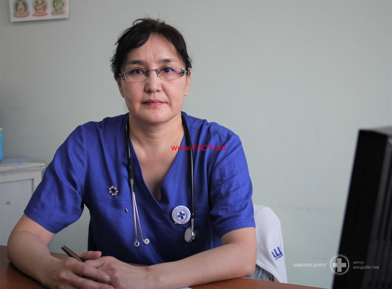 Манай кабинетаар өдөрт дунджаар эмчийн үзлэгт 25, эмчилгээнд 80 гаруй хүн үйлчлүүлдэг. Өрх болон нарийн мэргэжлийн эмчид үзүүлж онош тодруулж, шинжилгээ бүрэн хийгдсэн хүмүүсийг хүлээн авч, эмч үзээд эмчилгээнд хамруулдаг. Урьд нь ачаалал маш их, хүлээгдэлтэй ажилладаг байсан. ӨЭМТөвүүдэд зарим сэргээн засах тусламж үйлчилгээг хийдэг болсноор ачаалал буурч байгаа. 7-8 төрлийн аппаратыг физик эмчилгээнд ашиглаж байна.
