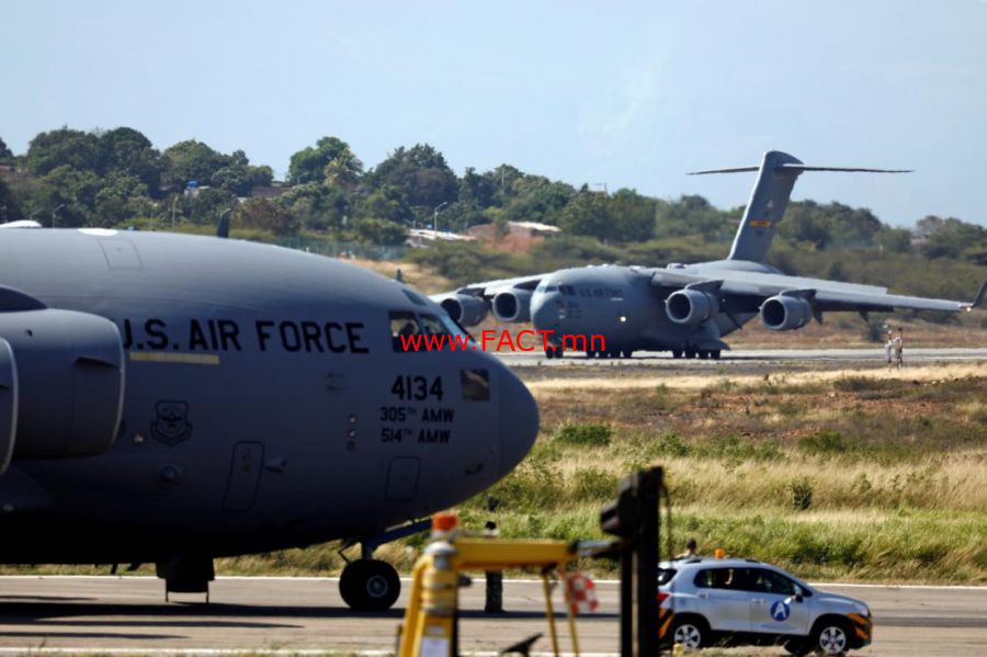 Өөрийгөө Венесуэлийн түр Ерөнхийлөгчөөр зарласан сөрөг хүчний удирдагч Хуан Гуайдогийн хүсэлтийн дагуу АНУ-ын цэргийн нисэх онгоцнууд Венесуэлийн хилийн ойролцоох Колумбийн Кукута хотод хүмүүнлэгийн тусламжуудыг хүргэжээ.