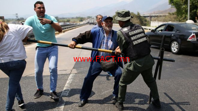 Сөрөг хүчний удирдагч Хуан Гуайдо нь Колумбийн хилээс нийслэл Каракас хотод хүмүүнлэгийн тусламж хүргэх баг бүрэлдэхүүнийг ахалж байгаа юм. Тэрбээр өнгөрсөн сард өөрийгөө тус улсын түр Ерөнхийлөгч хэмээн зарлаж, АНУ тэргүүтэй олон арван улс түүнийг хүлээн зөвшөөрсөн билээ.