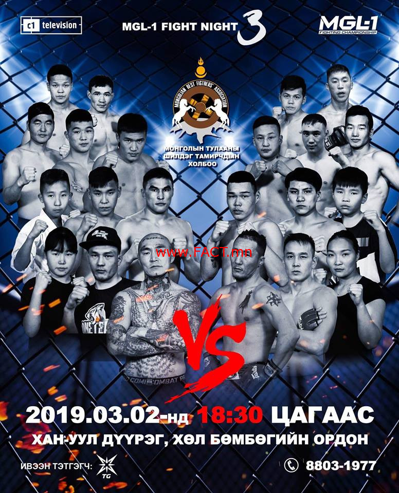 2019 оны цуврал холимог тулааны халз тулаан эхлэлээ. 2019 оны 03 сарын 02 ний өдөр MGL-1 FIGHT NIGHT чансаа ахиулах 3 дугаар тэмцээнийг Төв цэнгэлдэх хүрээлэнгийн хажууд байрладаг Хөлбөмбөгийн ордон 2019.03.02 нд 18.30 минутаас эхлэнэ. Энэ тулаанд. ОРГИЛ ТУЛААН. Эрдэнэт хот, “Эрдэнэт үйлдвэр”, “Эрдэнэт сувилал”, “Бэхээ дожо”-ны тамирчин Хүрэлбаатарын Төрбаяр. 2017 оны “Мастер тулаанч” шоуны сорил тулаанд ээлж дараалал ялалт байгуулан шалгарч чадсан ч, өөрийн хүсэлтээр оролцохоос татгалзсан. Шоуны сүүл үед шоуны ялагч болсон “Ширэн бээлий клуб”-ын тамирчин Шинэчагтагатай үзэгчдийн хүсэлтээр орж ирж тулалдан, шүүгчдийн саналаар ялагдсан ч үзэгчдийн дунд маргаан үүсгээд амжсан.2018 онд Эрдэнэт хотод болсон MGL-1 FINGHTING CHAMPIONSHIP 11-р тулаанд ХСИСургуулийн тамирчин Мөнхжинг КО буюу хүнд цохилтоор буулган авч, MGL-1 FINGHTING CHAMPIONSHIP 12-р тулаанд оролцох байсан ч бэртлийн улмаас тулалдаагүй юм. Түүний өрсөлдөгч нь “Геомандал” ГХХАлба, “Ширэн бээлий клуб”, “One time club”-ийн тамирчин Эрдэнэбаатарын Ганзориг. 2017 оны “Мастер тулаанч” шоуны сорил тулаанд ялалт байгуулан гарч ирээд, эхний тойрогт ХСИСургуулийн тамирчин Ц.Төгсболдод ялагдал хүлээн шоуг орхисон боловч, өөрийгөө хөгжүүлэн, холимог тулаанаар дахин хичээллэж, ОХУ-ын “Байкаль ММА” холимог тулааны тэмцээнд 2 ялалтыг байгуулсан. ДЭД ОРГИЛ ТУЛААН. 66 кг-ийн жинд “Энгүй тал” ХХК, “Эрч клуб”-ын тамирчин Өлзийбадрахын Баярмандах. 2017 оны “Мастер тулаанч шоу”-ны сорил тулаанд ээлж дараалан ялалт байгуулан гарч ирсэн боловч, шоуны анхны тулаанд ХСИСургуулийн Б.Даваанямд ялагдан, мөн 2017 оны MGL-1 FINGHTING CHAMPIONSHIP халз тулаанд Ангууч гэгддэг Баттөрд ялагдсанаар түр завсарлаад байсан. 2 жил бэлдсэний эцэст дахин дэвжээндээ эргэн ирлээ.Түүний өрсөлдөгч “GOLDEN GYM”, “GOLDEN HUUR” ХХК-ий тамирчин, “Авъяаслаг Монголчууд” нэвтрүүлгийн онцлог оролцогчдийн нэг, төмөр шилийг хашраагч Цэцэгмаагийн Мөнхсайхан. 2018 оны сорил тулаанд өөрийн сэтгэл хөдлөлөөр, ямар ч дасгалжуулагч, бэлтгэлгүйгээр оролцоод, 5 мин-аар 3 үе бүтэн цагаа дуусгаж чадсан. Энэ амжилтандаа итгэл төрөн, өөрийгөө дайчлан тулалдахаар иржээ. 2 жил дэвжээнд гараагүй “Алуурчин” уу, аль эсвэл шил иддэг, төмөр сэлмэнд үл дийлдэгч үү…3-р сарын 2 нд үзээрэй мөн анх удаа охидын тулаан, хүүхдийн тулаан сорил тулаанаар шалгарсан шилдэг тамирчдын тэвчээр хатуу жил, хурд хүчийг үзэх 11 халз тулаан болно.