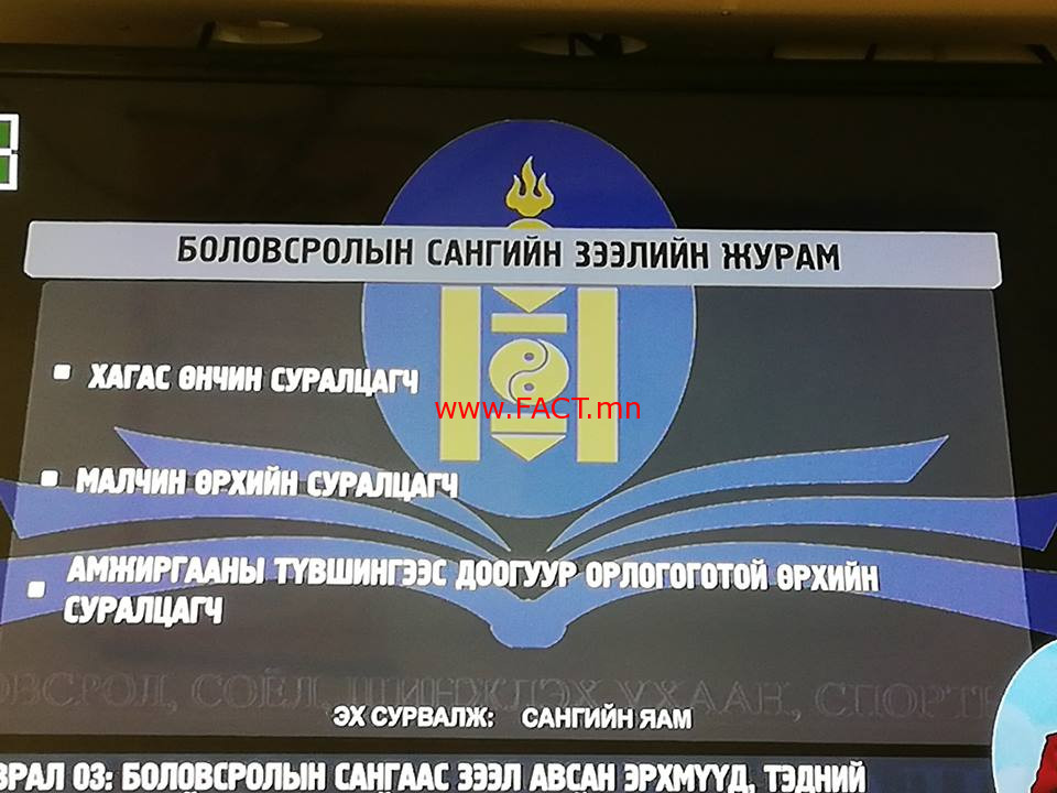 БОЛОВСРОЛЫН САНГ ЦӨЛМӨГЧИД: Ө.Энхтүвшин, Д.Лүндээжанцан, Х.Баделхан, Ц.Нямдорж, Г.Алтан, Д.Дэмбэрэл, Л.Цог, Т.Бадамжунай….