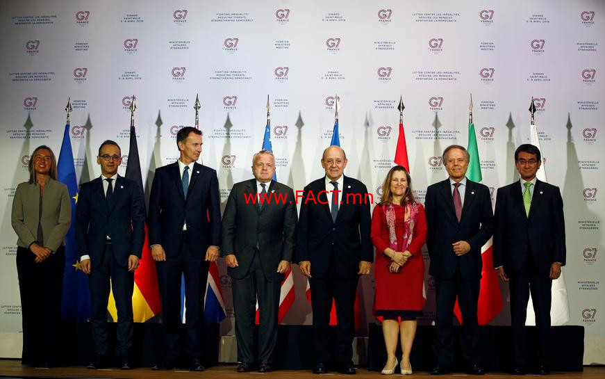 “Их 7”-ийн орнуудын Гадаад хэргийн сайд нар Францын нийслэл Парис хотноо уулзаж байна. Хоёр өдөр үргэлжлэх энэхүү уулзалтын үеэр хэлэлцэх гол сэдвүүдэд БНАСАУ, Иран болон кибер аюулгүй байдлын асуудлууд багтаж байна.