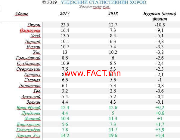 Үндэсний статистикийн хорооноос гаргасан судалгаагаар тус аймаг өнгөрсөн 2018 онд ажилгүйдлийн түвшинг 9,1 хувиар буюу хамгийн өндөр хувиар бууруулсан аймгийн нэг болж байна.