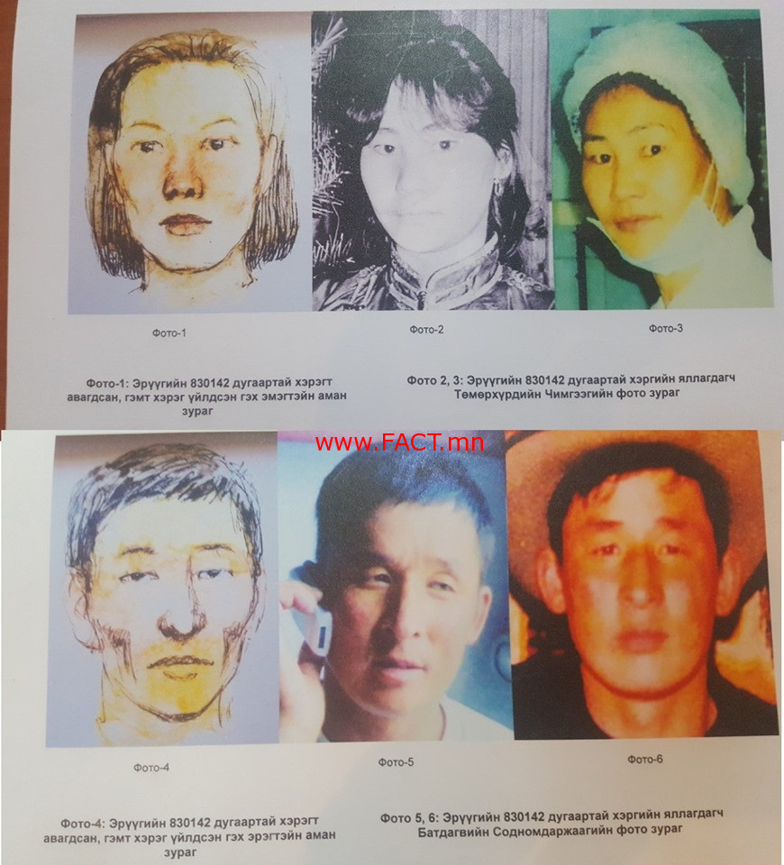Зураач Ц.Байды гуайн гаргасан ам зурагтай яв цав таарсан хүн нь Т.Чимгээ, Б.Содномдаржаа нар. Харин Ц.Амгаланбаатарын хувьд сүүлд шинээр гарч ирсэн хэргийн холбогдогч. Өөрөө хэргээ хүлээж, хамсаатнуудаа илчилсэн.