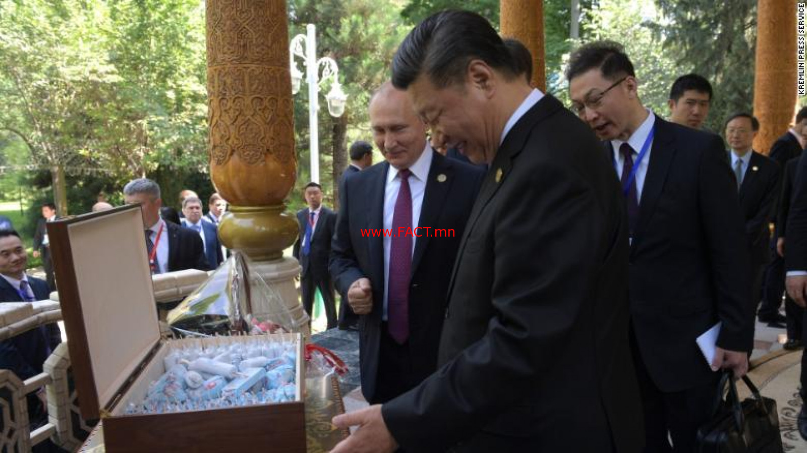 Хятадын дарга хамгийн сайнд анд нөхөр минь хэмээн цохон тэмдэглэж байсан Ерөнхийлөгч Владимир Путины бэлгийг хүлээж авсандаа талархал илэрхийлж, түүнийг Хятадад нэр хүндтэй байдаг гэжээ.