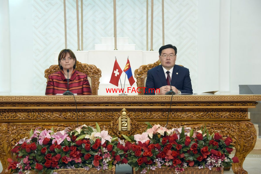 2018-2021 онд хэрэгжүүлэх Хамтын ажиллагааны стратегийн хүрээнд хөдөө аж ахуй, хүнсний аюулгүй байдал, мэргэжлийн боловсрол, сургалт, захиргааны шинэтгэл, орон нутгийн засаглал, иргэний оролцооны чиглэлээр сүүлийн жилүүдэд Монгол Улсад 100 сая швейцар франкын буцалтгүй тусламж үзүүлж ирсэн” хэмээн талархал илэрхийлэв. Цаашид Хамтын ажиллагааны стратегийн хамрах хүрээг өргөжүүлэн 2022 оноос Швейцарын Холбооны Улсаас Монгол Улсад үзүүлэх туслалцаа дэмжлэгтээ нэн тэргүүнд хөдөө аж ахуйг эрчимжүүлэх, бэлчээрийн мал аж ахуйг сайжруулах, бэлчээрийг хамгаалах, засаглалыг сайжруулах чиглэлээр тусламж, хөгжлийн дэмжлэг үзүүлнэ хэмээн найдаж, хүсэлтээ тавиад байгаагаа Улсын Их Хурлын дарга энэ үеэр хэллээ.