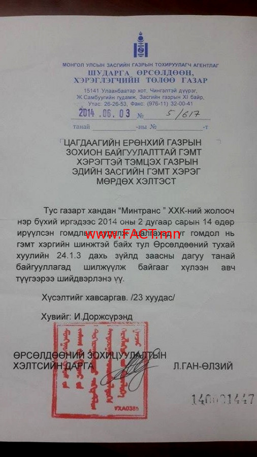 Эх сурвалж: Shuurhai.mn 2015.06.10