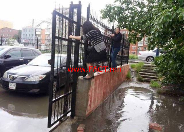 Нарны гүүр орчмоор зорчих хүмүүс ус туучин, зарим нь алсуур тойрч ус багатай газраар харайн гарч харагдана. Үнэндээ тэд хамаг муу үгээ барна. Бухимдахгүй байхын ч аргагүй. Адаглаад ус зайлуулах хоолойг нь цэвэрлэчихээгүй байгаа юм чинь. Ус зайлуулах хоолой нь тагларсны улмаас борооны ус оргилон гарч байв.