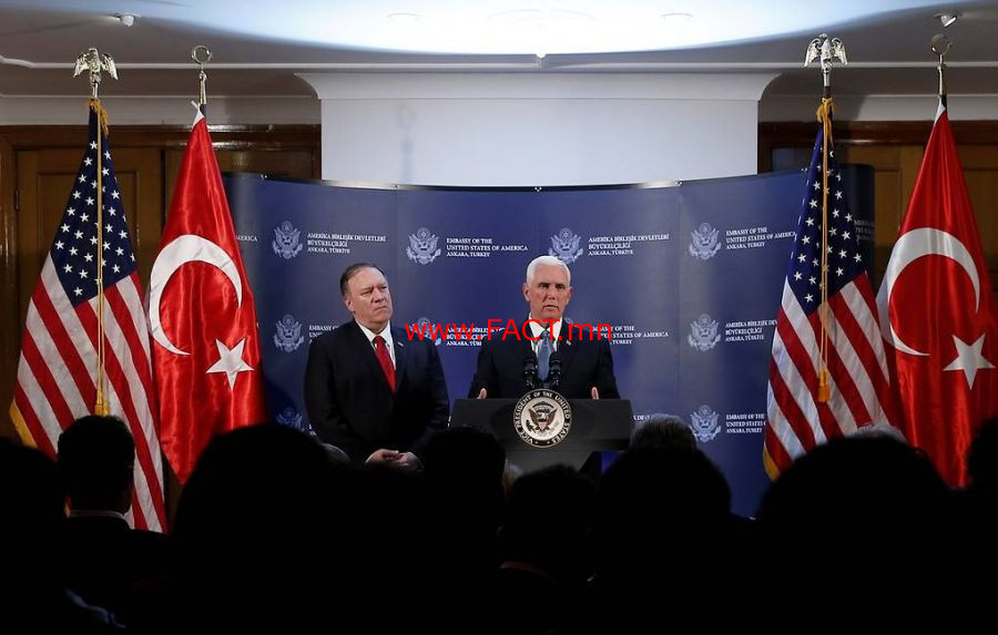 Курдистаны ажилчны нам хүчнийг гаргах зорилгоор Турк улс Сири дэх цэргийн ажиллагаагаа 120 цагийн хугацаатай түр зогсооно хэмээн АНУ-ын Дэд ерөнхийлөгч Майкл Пенс тус улсын Төрийн нарийн бичгийн дарга Майк Помпеотой хамтарсан хэвлэлийн бага хурлын үеэр мэдэгджээ.