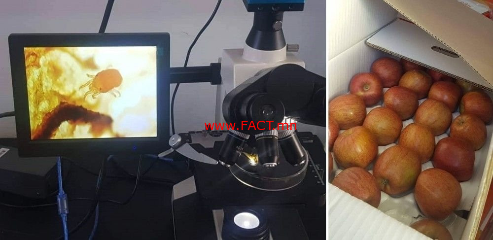 Нэр бүхий компанийн БНСУ-аас Замын-Үүд боомтоор арваннэгдүгээр сарын 24-ний өдөр импортолсон 9.2 тонн улаан алимыг хилийн Мэргэжлийн хяналтын лабораторийн сорилт шинжилгээнд хамруулахад жимсний улаан хачиг, шүлхий хачиг амьд, их хэмжээгээр илэрчээ.