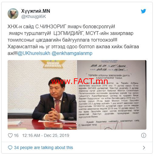 Түүнийг хуурамч бичиг баримт бүрдүүлсэн учраас шалгаж өгөхийг хүсч, Төрийн албаны зөвлөлөөс Хан-Уул дүүргийн цагдаагийн хэлтэст хандсан байна. Энэ дагуу шалгаж Эрүүгийн хэрэг үүсгэн яллагдагчаар татах саналтай тус дүүргийн прокурорын газарт хүргүүлжээ. Олон нийтийн сүлжээнд Х.Цэгмидийг Хөдөлмөр, нийгмийн хамгааллын сайд С.Чинзориг томилсон гэх хэмээн бичиж байна.