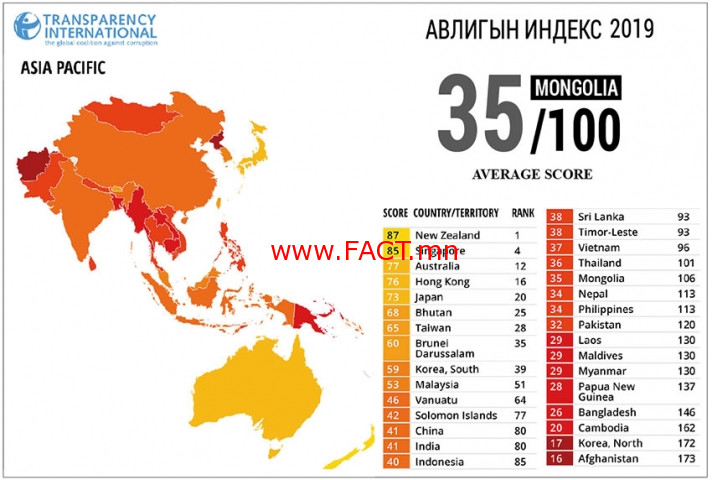 Монгол Улс авлигын индексээр 13 байр ухарлаа