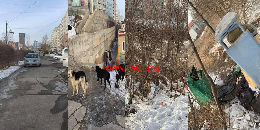 Зураг дээрх дүр төрх бол С.Одонтуяатай Засаг даргатай Баянгол дүүргийн 3,4 дүгээр хорооллын орчим. Хаа сайгүй хур хог бөөгнөрч, золбин ноход хөлхөж, явган хүний замаар автомашин чөлөөтэй зорчиж буйг харж байна. Хөл толгой нь олдохоо больсон ундуй сундуй орчин. Эзэнгүй айл шиг. Шөнийн цагаар ноход нь улилдаж, өдөр нь хүүхэд хөгшид рүү золбин ноход нь дайрдаг, хог ачихаа больсон гээд тус дүүргийг тойрсон асуудлууд захаас аваад замаар нэг хөглөрч байна.