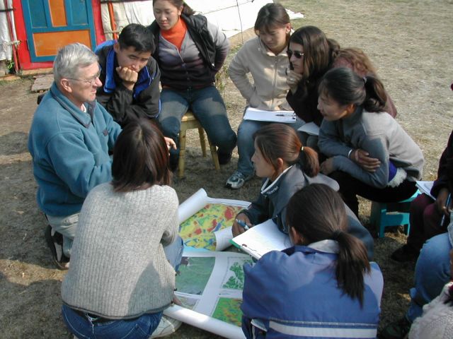 (Др. Гоулден шинэ залуу судлаачдад хичээл зааж байна)