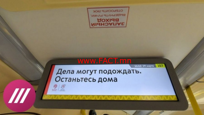 МОСКВА. /RIA Novosti/. Коронавирусний халдварын 900 гаруй тохиолдол бүртгэгдээд буй Москва хотын бүх оршин суугчдад гэртээ өөрийгөө тусгаарлах дэглэм тогтоосныг хотын захирагч Сергей Собянин ням гарагт мэдэгджээ. Энэ дэглэм гуравдугаар сарын 30-ны даваа гаргаас мөрдөгдөж эхэлнэ. Москва мужид мөн ийм арга хэмжээ авсан байна.