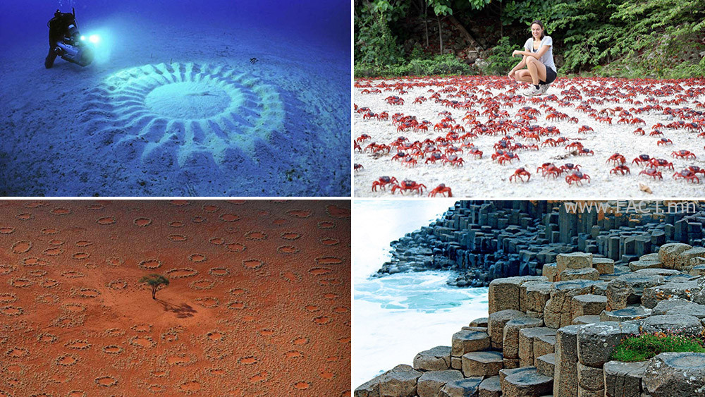 Япон тэнгист байдаг нэг төрлийн эрэгчин загас далайн ёроолд иймэрхүү хээ угалз гаргаж эмэгчнээ татдаг.