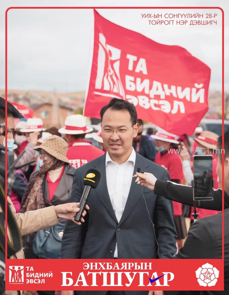 Монголын ард түмний дуу хоолой болж, МАНАН-гаас салгах найдвар, мөрөөдөл, хүч чадлын илэрхийлэл болсон МАХН-ын түмт, мянгат, зуут, аравтын идэвхтэн сонгуультнууд түүнийг МАХН-ын лидер Энхбаярын хүү учраас СХД-ийн 28-р тойрогт баталгаатай нэг суудал авна гэж итгэл найдвар хүлээлгэн энэ сонгуульд нэр дэвшүүлж байгаа. Энэ нь ч оносон сонголт болсон гэдгийг сүүлийн үед Э.Батшугарын иргэдтэй хийж байгаа уулзалт тодорхой харуулж байна.