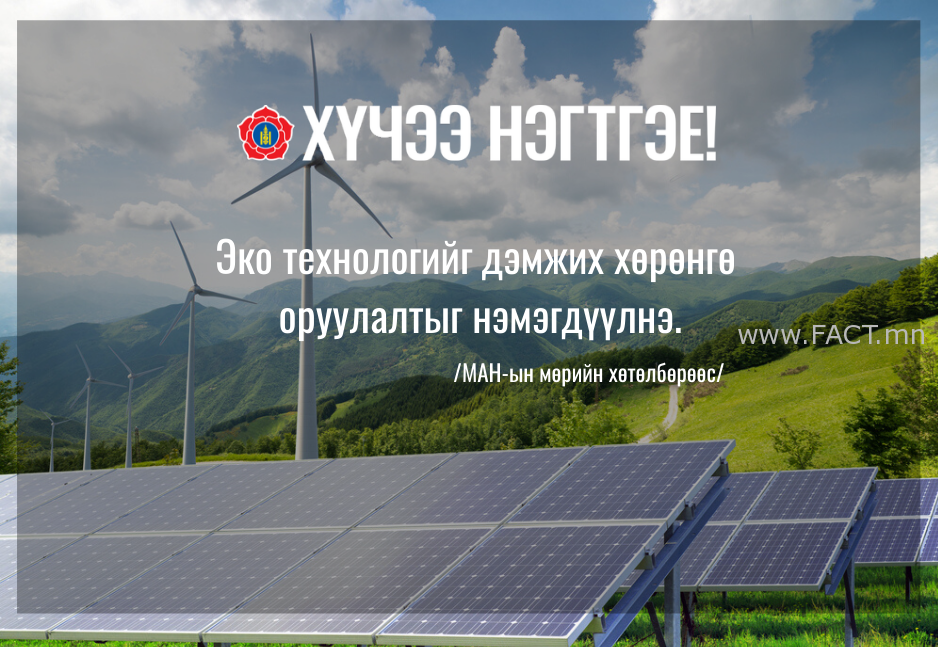 Эко технологийг дэмжих хөрөнгө оруулалтыг нэмэгдүүлнэ