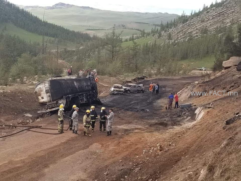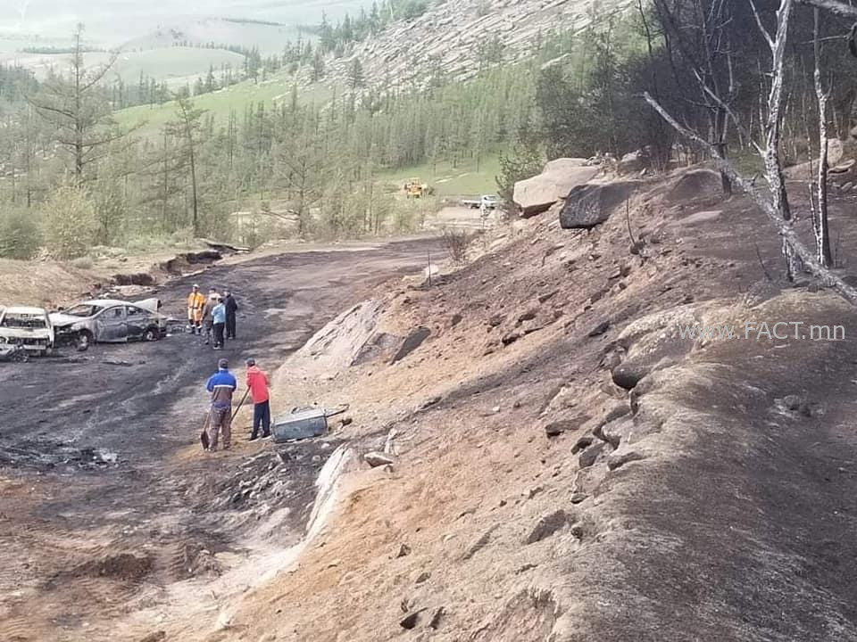 Зам тээврийн ноцтой осол гарч, 2 хүний амь нас хохирч 8 хүн түлэгджээ
