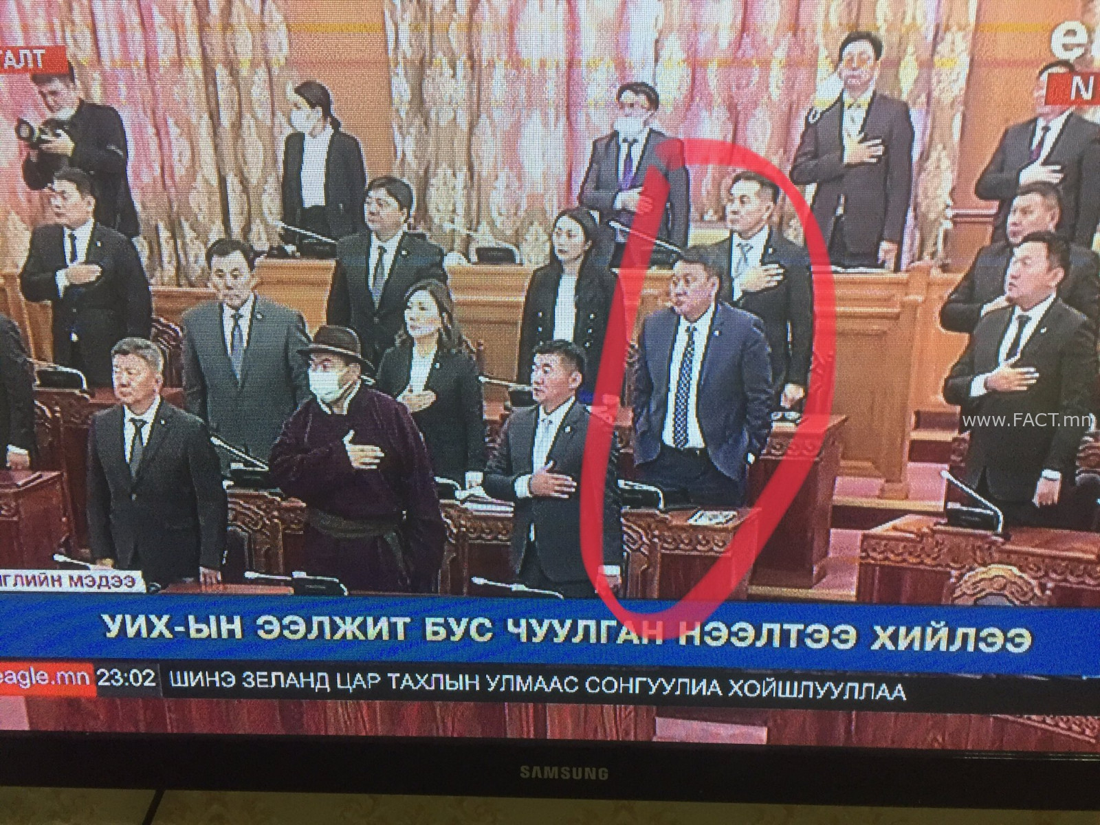 Өчигдөр/2020.08.17/ Улсын Их Хурлын ээлжит бус чуулганы үеэр төрийн дуулал эгшиглэхэд Дархан-Уул аймгаас сонгогдсон УИХ-ын гишүүн Болдын Жавхлангийн халаасандаа гараа хийн зогссон, утсаа оролдож буй зураг цахим орчинд тархан олны дургүйцлийг хүргээд байна. Тодруулбал, бусад гишүүд бүгдээрээ босч зогсон, хүндэтгэл үзүүлж байхад Б.Жавхлан гишүүн ганцаараа утсаа оролдож, гараа халаасандаа хийж буй зураг цацагдсан юм. Төрийн дуулал бол Монгол Улсын төрийн бэлэгдэл. Төрийн дуулал эгшиглэхэд найман настай балчираас, наян настай буурал хүртэл босч зогсон, гараа зүрхэн тушаа тавьж хүндэтгэл үзүүлдэг учиртай. Гэтэл эрхэм гишүүн эхнээсээ л ийм хайнга, хүндэтгэлгүй үйлдэл харуулж буйд нь иргэд дургүйцэж, бухимдлаа илэрхийлсээр байна.