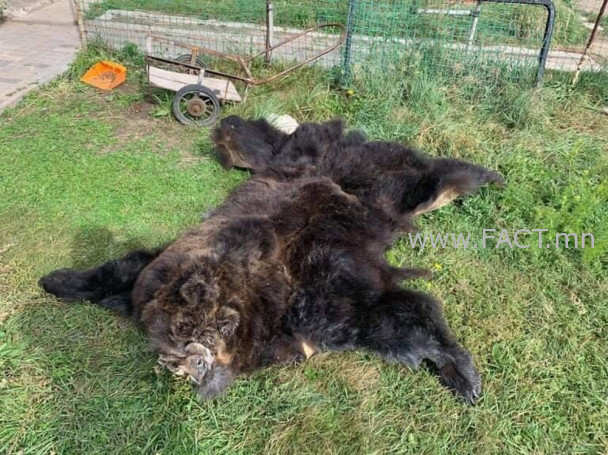 ЦЕГ-ын Экологийн цагдаагийн албаны алба хаагчид 2020 оны 09 дүгээр сарын 03-ны өдөр Сонгинохайрхан дүүргийн 25 дүгээр хорооны нутаг дэвсгэрт иргэн У гэгч нь гэрийнхээ үүдний амбаартаа ховор ан амьтны жагсаалтад орсон хүрэн баавгайн гавлын яс, сарвуутай арьсыг хууль бусаар олж авч хадгалсныг илрүүлжээ.