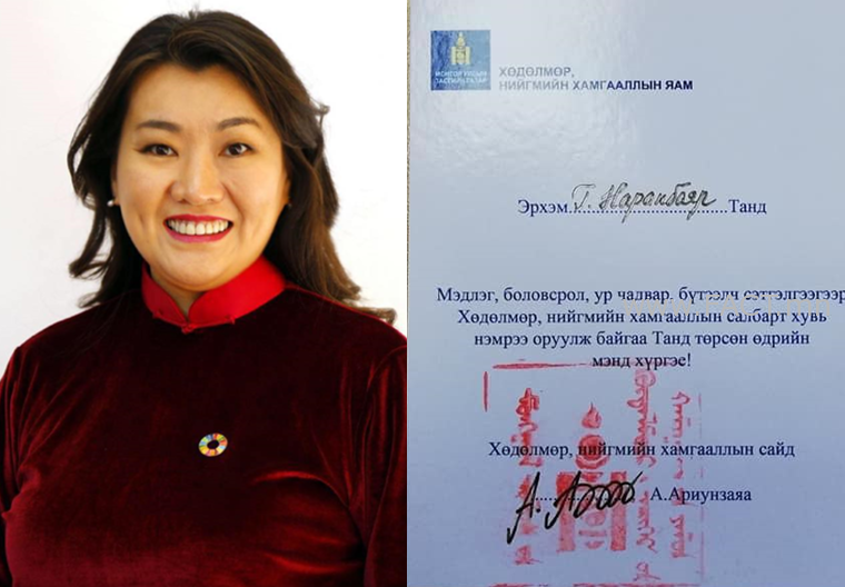 “Будаач будаач гэхээр сахлаа будав” гэгчээр тойрон хүрээлэгчдийн магтаалд төөрч будилав уу гэлтэй, төрийн сайд хатагтай түмний шившиг болох нь тэр. Үндэсний статистикийн хорооны даргын албан тушаалаас ХНХ-ын сайдаар томилогдсон А.Ариунзаяа хатагтайгийн айхтар сүртэй мэндчилгээ өвөөгийнх нь нэрийг дагуулсаар өөлүүлж баалуулах болов. Учир юуг тодотговоос, төрийн яамны тамгаар төрсөн өдрийн мэндчилгээг чимжээ. Энэ үйлдэл нь түүний хувьд эхний тохиолдол биш юм гэнэ.