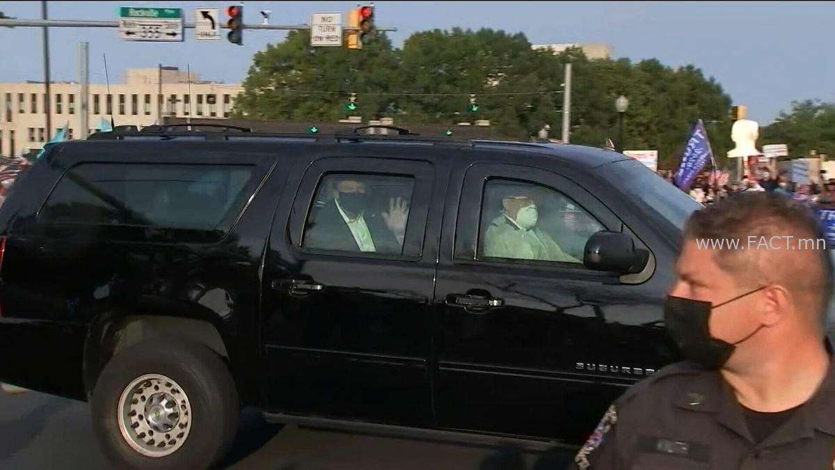 АНУ-ын ерөнхийлөгч Дональд Трамп болон түүний эхнэр Мелина Трамп нар коронавирусын халдвар авснаа баасан гаригт зарласнаар дэлхий нийт түүний эрүүл мэндэд санаа зовниж эхэлсэн билээ. Гэсэн ч Тармп эмнэлгээсээ үргэлжлүүлэн ажлаа хийж буй бичлэгээ цацаж, бие нь сайжирч буйгаа зарлаад байгаа юм. Тэгвэл тэрээр өчигдөр эмнэлгээс гарч Вальтер Рийдийн нэрэмжит цэргийн үндэсний эмнэлгийн төвийн гадаа цугласан дэмжигчидтэйгээ машин дотроосоо гараа даллан мэндчилсэн байна. Хэдийгээр тэрээр масктай байсан ч машинд хамт явсан нууц албаны төлөөлөгчийн эрүүл мэндэд хохирол учруулж, улмаар халдвар тархааж болзошгүй хэмээн зарим хүн шүүмжилж байна. Тухайлбал, доктор Жеймс Филлипс “Ерөнхийлөгчийн машинд сууж явсан бүх хүнийг 14 хоног тусгаарлах шаардлагатай. Тэд халдвар авч, улмаар амиа алдаж магадгүй. Ерөнхийлөгчийн энэ хариуцлагагүй байдлыг үнэхээр их гайхаж байна. Энэ бол солиорол” гэж твиттертээ бичжээ. Трампын эмч нар эрүүл мэндийн байдлынх нь талаар ням гаригт мэдээлэл өгөхдөө түүний хүчилтөрөгчийн хэмжээ хоёр дахин буурсан гэдгийг мэдэгдсэн билээ.