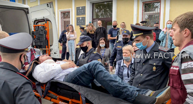 Өнгөрөгч мягмар гарагт болсон шүүх хуралдааны үеэр түүний аав гэрчийн мэдүүлэг өгсөн бөгөөд үүний дараа Латыпов өөрийгөө гэмтээсэн гэж Беларусийн “Виасна” хүний эрхийн байгууллага мэдээлжээ. Үүнээс өмнө тэрээр аавдаа хандан “Аав аа, цагдаа нар намайг хэрвээ хэргээ хүлээхгүй бол харгис хэрцгий гэмт хэрэгтнүүдтэй хамт хорьж хамаатан садан, хөршүүдийн минь эсрэг эрүүгийн хэрэг үүсгэнэ гэж сүрдүүлсэн” хэмээн хэлжээ. Ингээд Латыпов сандал дээр гарч зогсоод, нэгэн цагаан зүйл амандаа хийгээд, шууд хоолойгоо зүсэж эхэлсэн гэж шүүхийн танхимд байсан түүний найз ярьсан байна. Түүнчлэн хамгаалалтын ажилтнууд түүний торны түгжээг тайлахад маш их хугацаа зарцуулсан гэж гэрчүүд мэдүүлжээ.