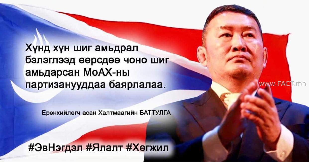 Монгол Улсын тав дахь Ерөнхийлөгч Х.Баттулгаас өөр хэн ч МоАХ-ны партизануудад БАЯРЛАЛАА гэж хэлээгүй.