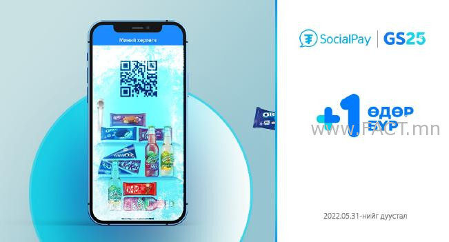 Энэ бол SocialPay аппликэйшний байнгын хамтрагч GS Mongolia-ийн 1 жилийн ойг тохиолдуулан бидний хамтран хэрэгжүүлж буй “SocialPay +1 GS25” урамшуулалт аян юм. Энэхүү аян нь 2022.05.18-05.31-ний хооронд үргэлжлэх ба энэ хугацаанд SocialPay ашиглан GS25 Mongolia-ийн бүх салбараас 8000₮-өөс дээш дүнтэй худалдан авалт хийсэн хэрэглэгч бүрийн “Миний хөргөгч”-нд сэрүүхэн бэлэгнүүд орох болно.